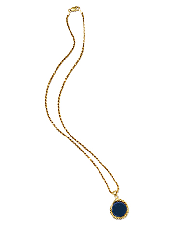 黒モチーフネックレス 62,700円/GAGAN コインを囲むウロボロス(=永遠)を表現した、ミステリアスなデザイン。こっくりとした深い色みと繊細なツイストチェーンが、デコルテをセンシュアルに引き立てる。肌の上にはもちろん、ハイネックの上からでも映える逸品。