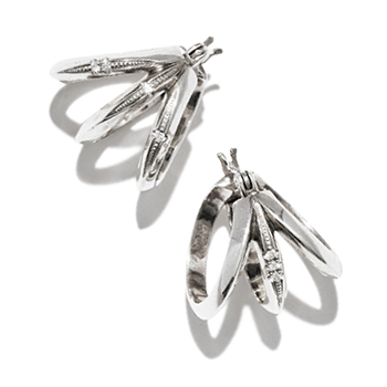 3連ピアス 59,400円/ENEY(ショールームリンクス) フープが3つ連なるデザインで、横顔にモードな立体感を。小ぶりながらも確かな存在感が、シンプルな装いを格上げ。