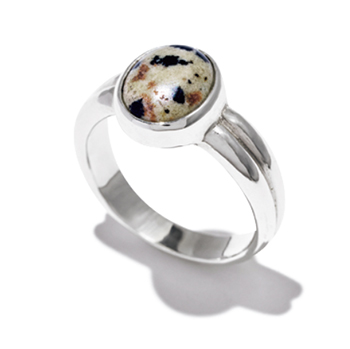 マーブルリング 29,700円/GAGAN 表情豊かなマーブルストーン(ダルメシアンジャスパー)が優雅。一点ものの特別感が、手元をスタイリッシュに格上げする。