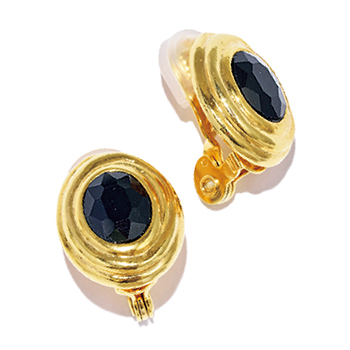 ゴールドイヤリング 11,000円/IRIS47(フーブス) ヴィンテージライクなゴールドと、中央で光を返すブラックガラス。クラシカルなムードが、顔まわりを品よく華やかに彩る。