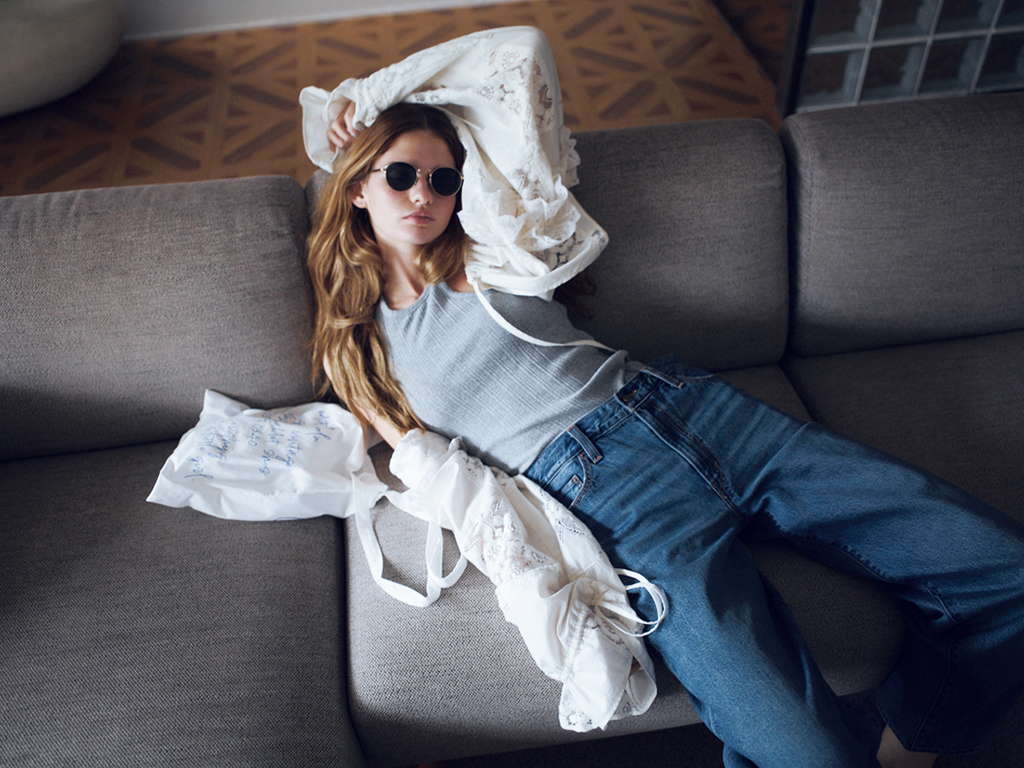 デニムと合わせる前提なら、糖度の高い白レースと距離が縮まる。タンクトップを合わせたやんちゃな格好にひっかけるだけで、穏やかな表情に導くことが可能。ずるっと肩を落とすと、どことなくセンシュアルなムードに。