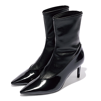まるでタイツのように脚に吸いつく、抜群のストレッチ性。そのフィット感が、足首を極限まで細く見せ、女性的でしなやかな曲線をメイク。たとえばワイドパンツのすそからこのタイトなシルエットをのぞかせる。それだけで足元も瞬時に引き締まる、まさに美脚をかなえるためのブーツ。