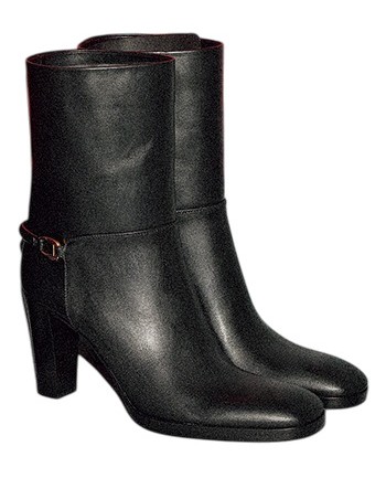 1.ブーティ(8) 286,000円 サンローランの彫刻入りリングをあしらった、バックアンクルストラップがアクセントに。ブロックヒールの安定感で、脚が疲れにくい。