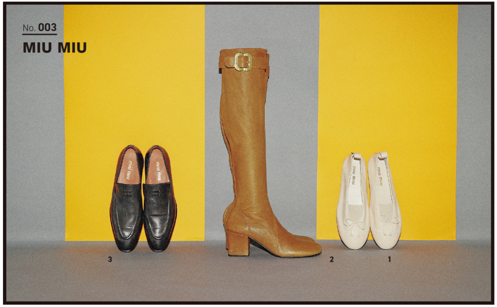 3.シューズ(2) 181,500円 静かな存在感を放つ、ソリッドなデザイン。そぎ落とされた黒は、いつの時代も1足あると助かる。/以上ミュウミュウ(ミュウミュウ クライアントサービス)