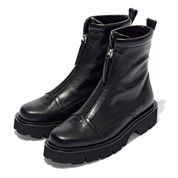 センタージップブーツ(4) 36,300円/卑弥呼 厚底=カジュアル、とは限らない。その答えが、フロントを縦に走るセンタージップ。このIラインが、足元にシャープな「キレ味」を連れてくる。ボリュームがあるのにすっきり見える秘密は、細めに仕上げたトゥ。着脱がラクなのもうれしいポイント。