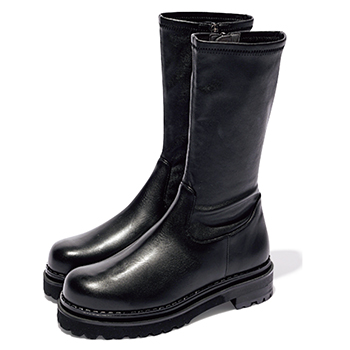 ストレッチミドル丈ブーツ(4) 29,700円/ダイアナ(ダイアナ 銀座本店) ゴツく見えずにスタイルUPをかなえる。そんな大人の選択肢は「スリムボディ」一択。脚のラインに吸い付くストレッチ素材と、ふくらはぎからかかとまでを「直線的」につなぐフォルム。