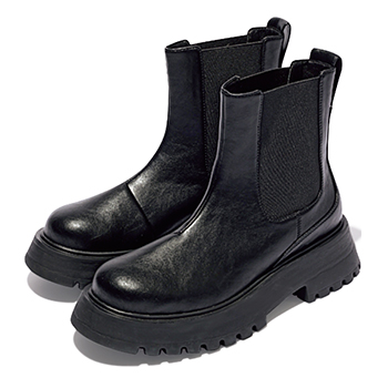 サイドゴアブーツ(5) 15,180円/MOUSSY(バロックジャパンリミテッド) ずるっとしたロングニットや、あえて溜まるほど長いワイドパンツ。そんな「ゆるさ」を主役にした日、足元まで華奢だと全体が間延びして見えがち。そこで効くのがボリュームソール。服のルーズなシルエットを、足元の「重さ」がしっかりと受け止めるアンカー=重しの役割を果たしてくれる。