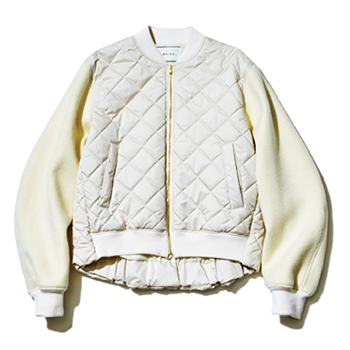 白ブルゾン 72,600円/BEIGE,(オンワード樫山 お客様相談室) 上品なキルティング素材を、フリースのクリーミィな白でコンサバすぎないバランスに。