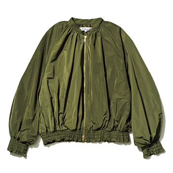 カーキブルゾン 41,800円/ビリティス・ディセッタン(ビリティス) 手首とすそにあしらわれたフリルギャザーがほのかな甘さをプラス。軽量なナイロン。