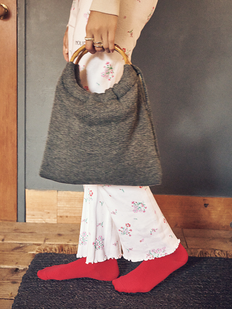 赤バッグ 18,700円/NKNIT カーヴィなハンドル部分が柔和な素材でさらに丸みをおび、赤いバッグをレトロに転換。金ボタンがクラシックな印象をあと押し。