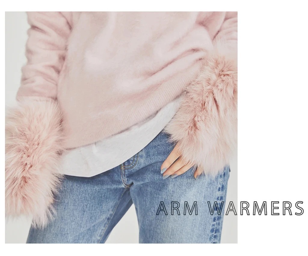アイテム単体でみるとインパクトの強いニット×ファーのアームウォーマーも、トーンを合わせてニットトップスにとけ込ませればさりげないポイントに。中に着た白Tとデニムの効果で、ピンクの甘さをカジュアルに転向