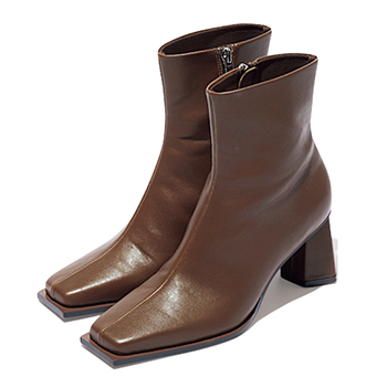 重めなボトムスやコートにも負けない、辛口なクロコの型押しと存在感のある太ヒール。甲の中盤から縦に伸びる、締めつけ感のないIラインの筒型は、パンツのブーツINも簡単。シャープなスクエアトゥとのバランスが、タフな中にも洗練さを漂わせる。