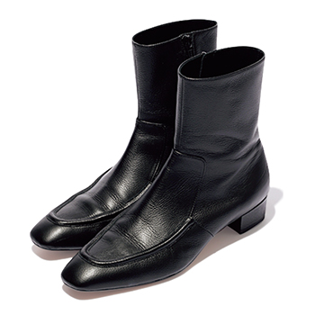 シンプルな黒ブーツを「普通」で終わらせない、靴底から張り出した構築的なコバ。この「角のある」ディテールが、装いにほどよいエッジをプラスし安定感のある6cmヒールで、歩きやすさも担保。いつものデニムスタイルも、この一足を合わせるだけでムードチェンジ。