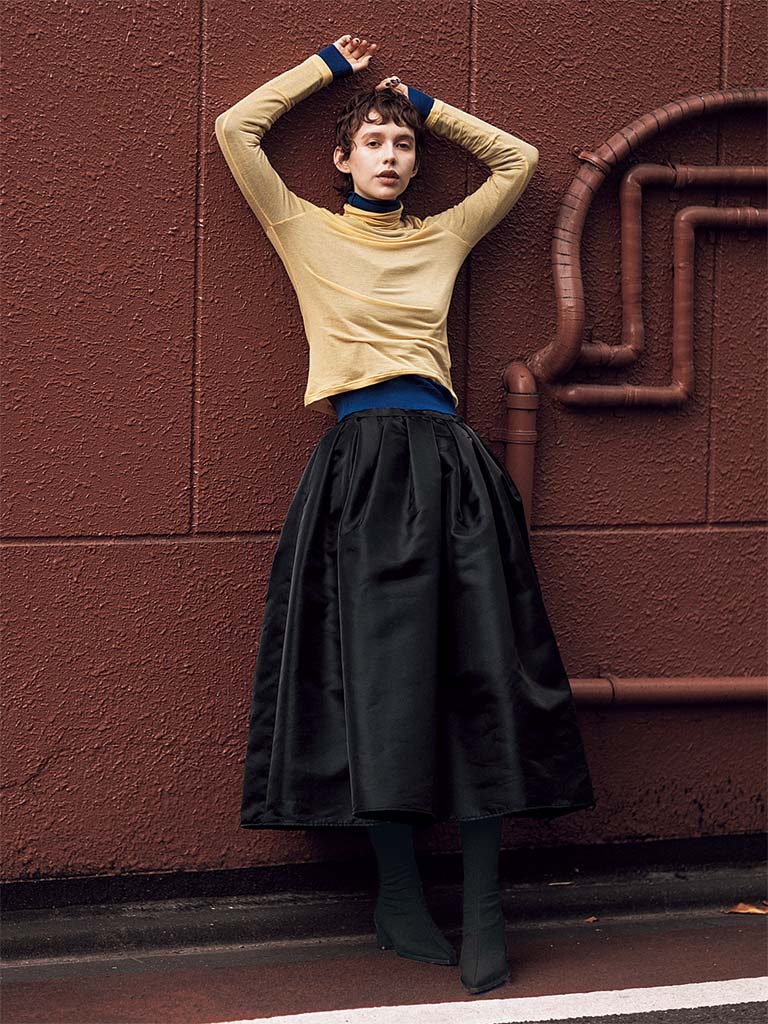 コンパクトなニットやショート丈の羽織りなど。短い上の人気は続きそうな傾向。「上はタイトに・下はゆるめに」が簡単に上手くいく、着回しやすい黒スカートをピックアップ。