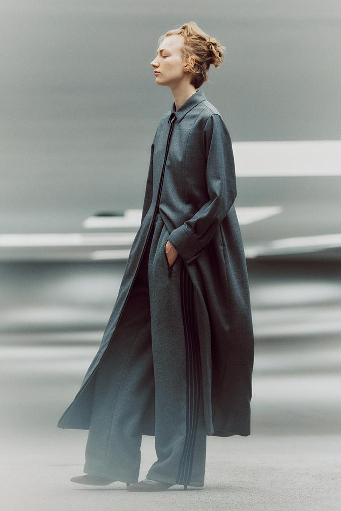 はっきりとしない色だから成立する、奥行きのあるワントーンスタイル。旬の厚手素材で立体感が出ることにより、のっぺり感なくけだるいシルエットを貫ける。どう転んでもエレガントにとどまる、ウールのシャツワンピース。フリース素材のラインパンツを仕込み、今どきなスポーツMIXに手軽にチャレンジ。