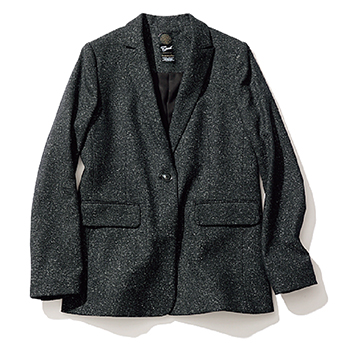 黒ツイードジャケット 60,500円/グリードインターナショナル ネップのような細かなツイード。コンパクトなえりでスタイリッシュ。白も感じるツイードの仕立てなら、端正な形でも緊張しすぎず使える場面も幅広い。
