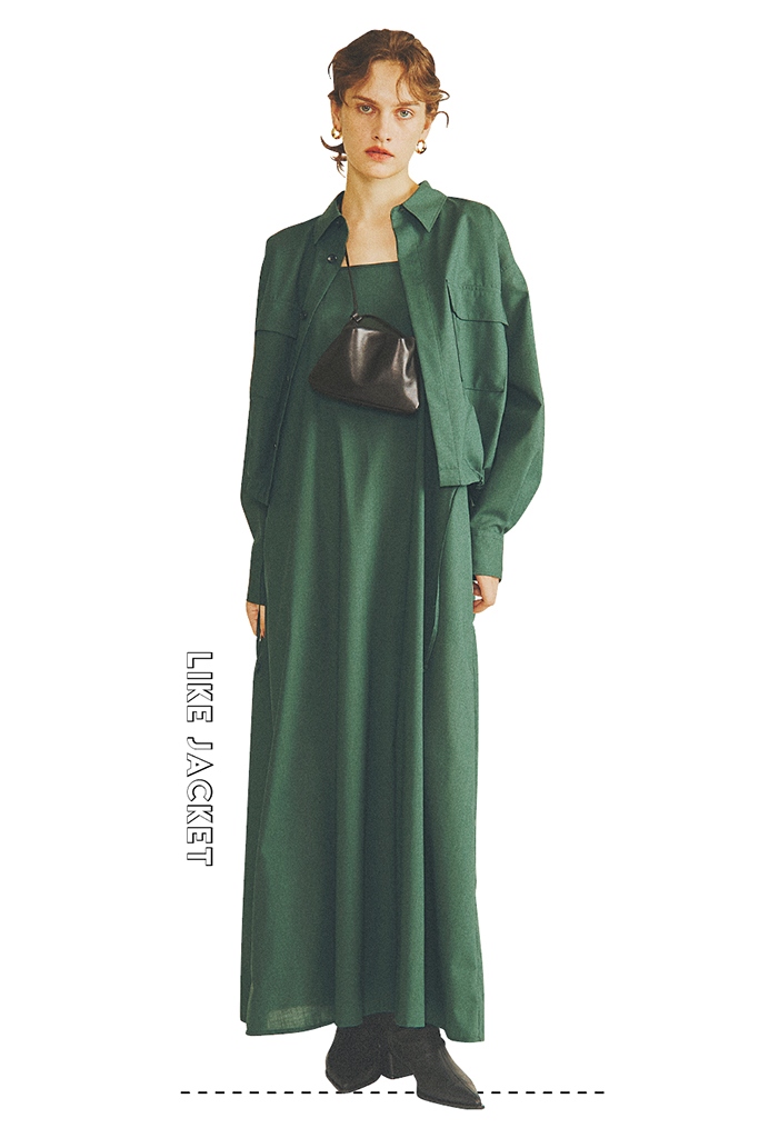 長いワンピの丈に合わせて「ジャケットの丈も長く」