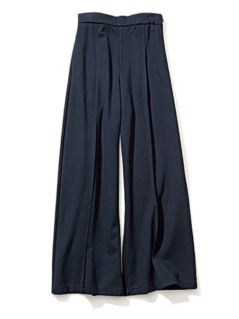 ネイビーワイドパンツ 31,900円/ロンハーマン ウエストまわりがフラットだから、タックINしたときもすっきり整う。腰位置を高く見せるハイウエスト。