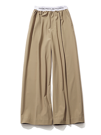 ベージュウエストロゴパンツ 26,400円/プロタゴニスタ(アマン) とろみのある質感&センタープレスで、ボーイッシュなデザインをキレイめに落とし込み。