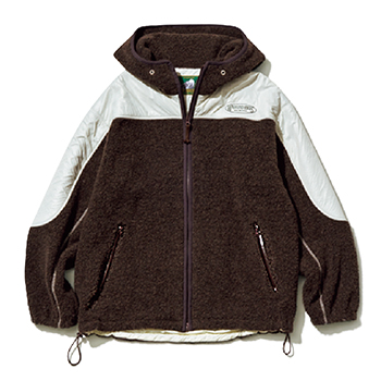 フリースジップアウター49,500円/THE SHINZONE(Shinzone ルミネ新宿店) ブラウンにほど近いグレーのボア生地をほっこりさせないナイロンMIX。