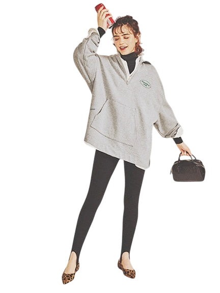 旬のジップスウェットを起用。中にタートル・白シャツを重ねて。すべてライトな生地なら、3枚重ねることで理想的な立体感に。スウェットがゆるい分、シャープな黒を散りばめて引き締めるのが効果的。