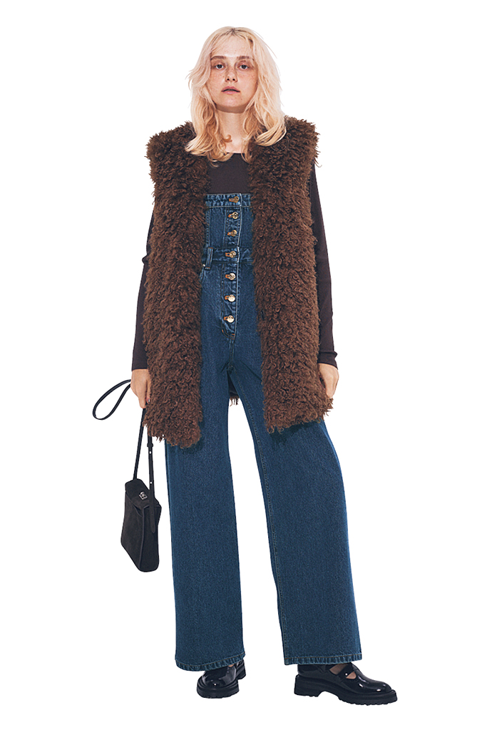 インナーもブラウンを選び、ボアの主張をなじませて。