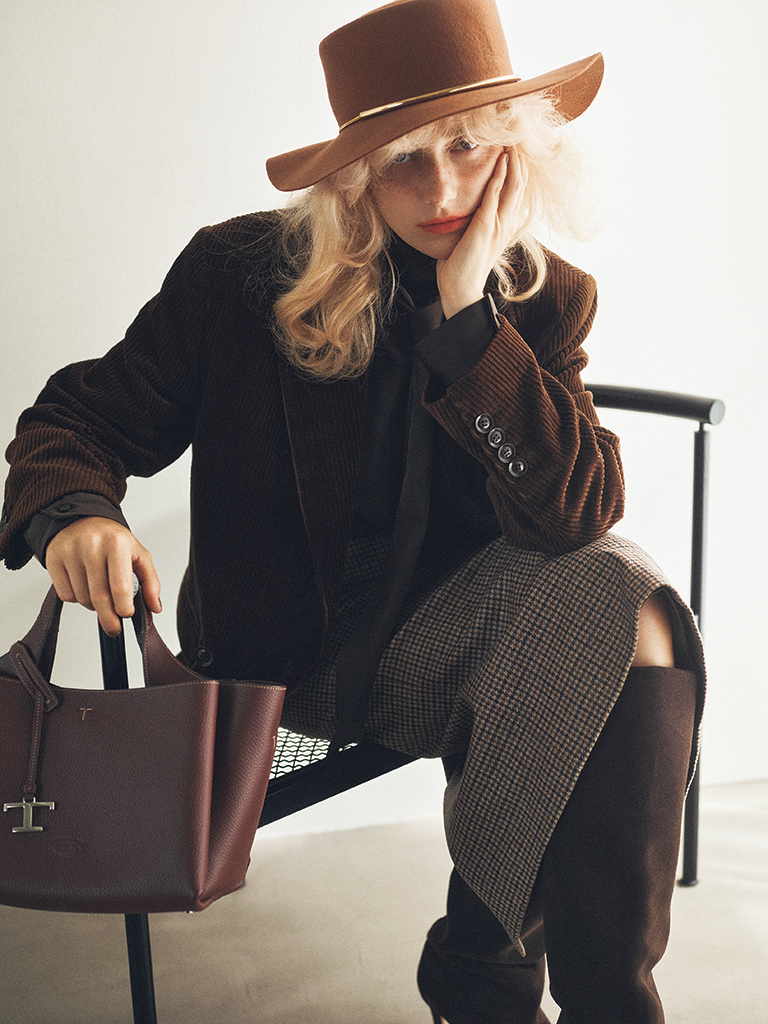 なつかしさがトレンドともいえる今シーズン。古きよきムードのおかげで、自由なレイヤードも「品のいいクセ」として着地。趣のある質感や柄を総動員しても、やりすぎに見えないのは包容力あるブラウンだから。