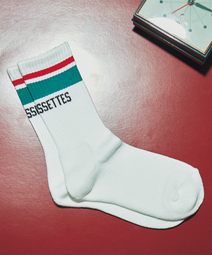 ソックス 3,190円/メ・ショセット(ジャック・オブ・オール・トレーズ プレスルーム) ローファーと相性のいいライン入りソックス。やわらかくほどよい厚みもあるリブ素材で穿き心地も抜群。