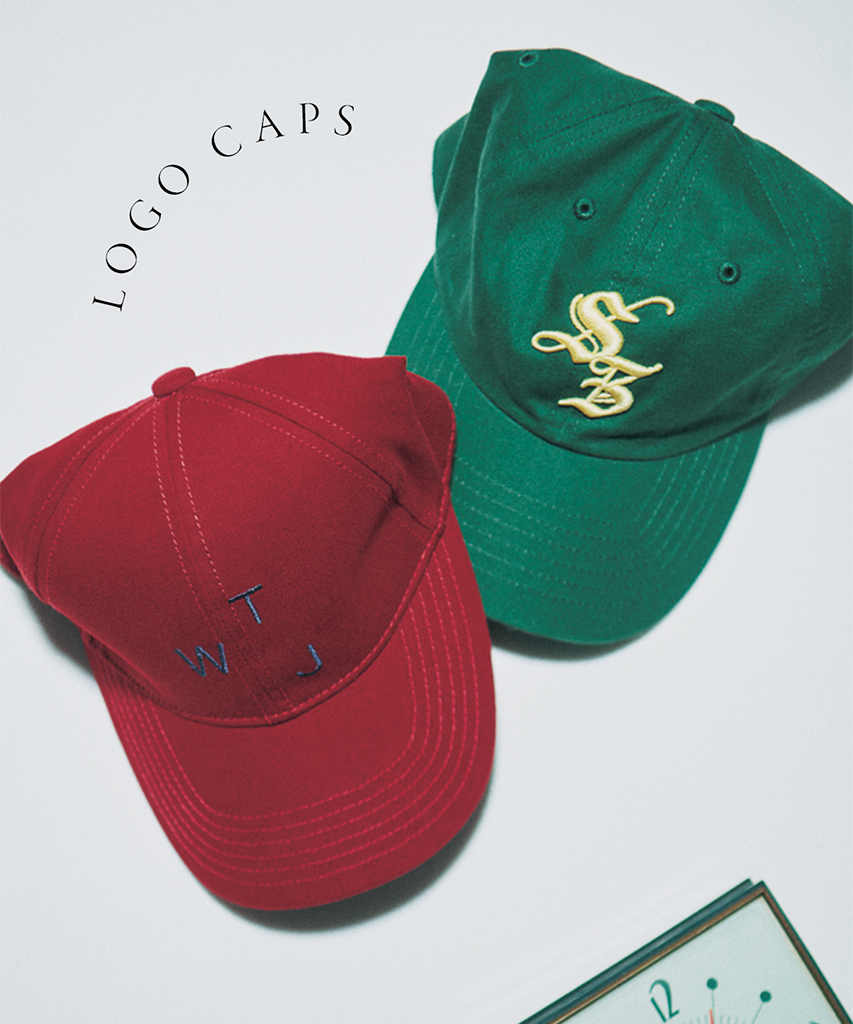 キャップ[左] 8,250円/TOKYO WEEKLY JOURNAL(バロックジャパンリミテッド) キャップ[右] 9,680円/THE SHINZONE(Shinzone ルミネ新宿店) カラーキャップは、ヴィヴィッドな色みでも深いトーンで選ぶと幼く見えない。ベースは寒色、ロゴは暖色のような、単体で強弱がついたアイテムがベター。