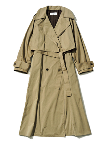 バサッと羽織るだけで絵になる、たっぷりとした丈感と身幅。中に厚手のニットを着込んでももたつかない「余白」のある形が、トレンチ特有の窮屈さを解消。シックなベージュの色みも相まって、これ1枚で大人の余裕が完成する。