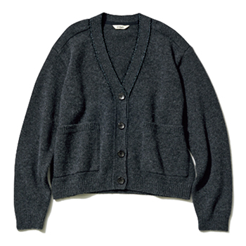 1枚で着ても様になるVネックの開き具合はもちろん、特筆すべきはそのテクスチャー。古着のようなやや硬めの風合いが、きれいめな装いに適度な「ハズし」を加える。アレンジしがいのある、ワードローブの活性剤。
