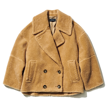 キャメルボアコート 64,900円/スタンブリー(ジャーナル スタンダード レサージュ 銀座店) 体をすっぽりと包み込むような、ゆったりとした身ごろと袖のビッグフォーム。愛らしいキャメルのボア素材で、トラッドなピーコートを柔らかな表情に。顔まわりをすっきりと見せる大きな衿のデザインが、ボリューム感の中にも抜け感をもたらす。