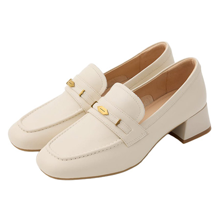 ホワイトコインローファー(4) 24,970円/STACCATO(バロックジャパンリミテッド) 安定感のあるブロックヒールで長時間はいてもストレスフリー。やさしげなオフ白に似合うひかえめなメタルコインがつつましやかな品を約束。