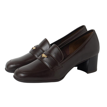ブラウンメタルモチーフつきローファー(2.5) 24,200円/ル タロン(ル タロン 有楽町マルイ店) はくたびに味わいが深まるコクのあるブラウン。やや太めにせり出したソールの黒が大ぶりなモチーフの引き締めにひと役。