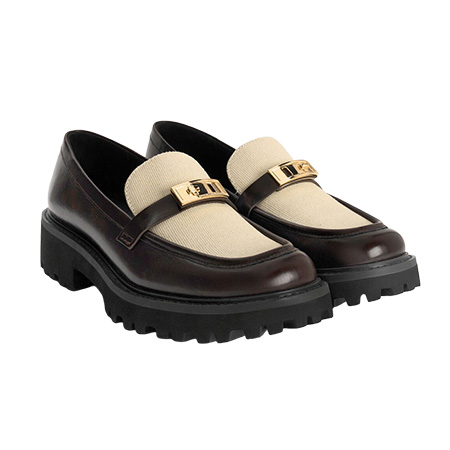 ブラウン×アイボリーキャンバスローファー(4.2) 10,900円/CHARLES & KEITH(CHARLES & KEITH JAPAN) スニーカーのようなボリュームソールながら、ミニマルを保てる縫い目の少ないデザイン。ベージュ+ブラウンやオールホワイトなど、やわらかな配色の締め役としても有効。
