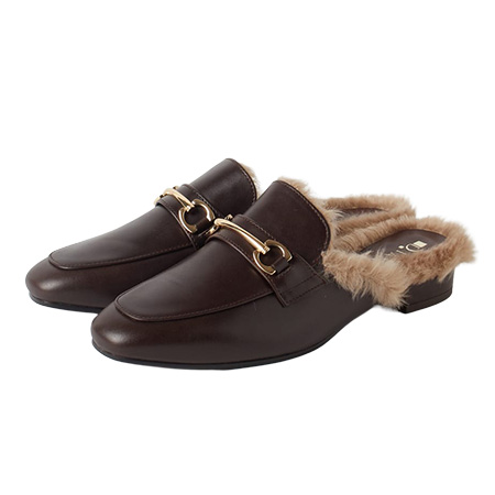 ブラウンファースリッポン(2.3) 18,150円/ダイアナ(ダイアナ 銀座本店) きちんと感と季節感を同時に獲得できる1足。部分的なふわふわが、足元をさっぱりとさせないアクセントに。着脱しやすいつっかけタイプ。