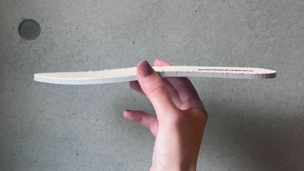 「今回のアップデートによりとくに違いを一番感じたのは足を入れたときの感覚の変化。新たなラスト(型)を採用したことで甲まわりにわずかにゆとりができ、ぱっと見の大きな変更はないものの、フィット感が強まりました。」