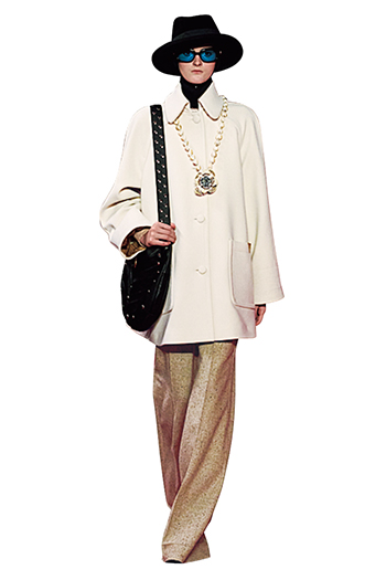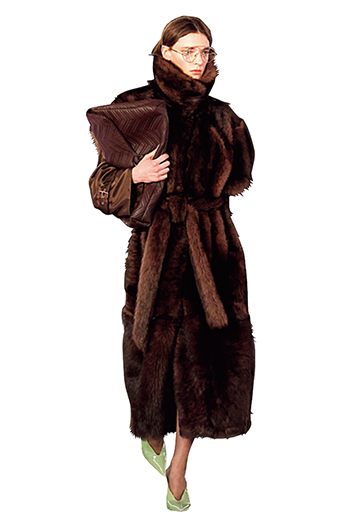 ミニサイズだと物静かで上品。かしこまったイメージのあるクラッチバッグは、日常づかいにも向く実用的なビッグサイズにアップデート。腕に収まりきらないほどのクラッチが等身大のムードをかもし、豪華なファーコートもがんばりすぎず、親近感のあるスタイルに。