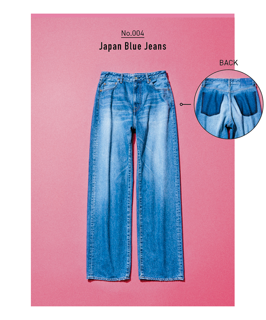 ブルーストレートデニムパンツ 35,200円/Japan Blue Jeans(S&T) バックポケットをはずしたことで生まれる生地の濃淡やステッチ跡が、ほかにはない熟練したヴィンテージ感を演出。脚線をすらりと流す、股上の深いストレートシルエット。
