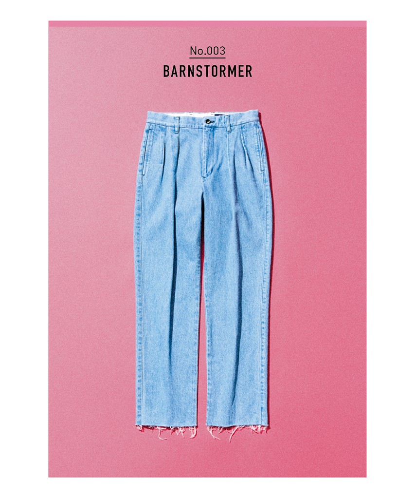 ブリーチタックデニムパンツ 47,300円/BARNSTORMER(UTS PR) ドレス仕立てのチノパンで有名な、「BARNSTORMER」からブリーチデニムが登場。ツープリーツ&ゆるめのテーパードのスマートな形により、どう着ようと気品のある佇まい。