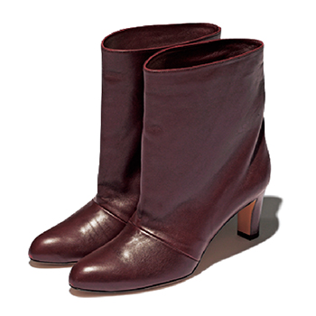 落ち着きを保ちながら、見た目も気分も変えられる暗めの赤。ふわりと空気をはらむワンピースのすそへ気品を添える役割に。ゆとりのあるワイドなはき口で、ふくらはぎをほっそりと見せる効果も期待できる。しなやかな牛革を使用。