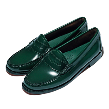 グリーンローファー(2) 34,100円/G.H.BASS(G.H.BASS TOKYO) オールドスクールなムードのローファーを変化球のダークグリーンで。黒のような落ち着きで、単純じゃないこなれたクラシックムードを上乗せしてくれる。はき続けるほど味が出て、経年変化を楽しめる上質レザー。