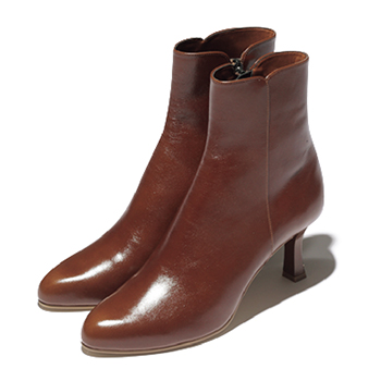 ブラウンショートブーツ(6) 31,900円/ダイアナ(ダイアナ 銀座本店) くびれたヒールや赤みがかったブラウンカラーが女性らしい印象をアシスト。穏やかなブラウンと調和のとれる細すぎないアーモンドトゥ。