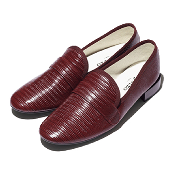 ボルドーレザーローファー(2.2) 82,500円/レペット(ルック ブティック事業部) いつものクラシックな装いにイタリアンスタイルのような風を吹かせる渋色のリザード調レザー。安心感のある甲深アッパーでスニーカーのように気楽にはける。