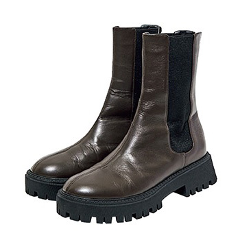茶サイドゴアブーツ(4.5) 38,500円/ザ ポーズ(ウィム ガゼット ルミネ新宿店) クッション性に優れたインソール。スタイリングをじゃましない、ミニマルさが魅力のサイドゴア。筒が細くすっきりと見える形&マイルドなブラウンならボリュームが出にくく、女性らしい装いともマッチ。