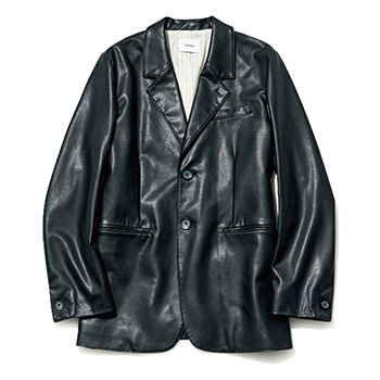 エコレザージャケット 34,100円/MIESROHE(MIESROHE ルミネ新宿1店) なじみのいいくたっと感。そのやわらかさのおかげでレザーの主張がいい意味で薄く、装いの整え役として最適。