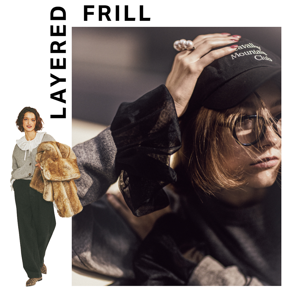 「ベーシックなニットを、インナーで印象を変えるレイヤードスタイルが気になっています。たとえば、大ぶりなフリルブラウスをニットの下に仕込んで首元やそでからのぞかせて、レトロな甘口ムードをさりげなく楽しみたいです。」(イラストレーター・珍田さん @tinda_fashion)