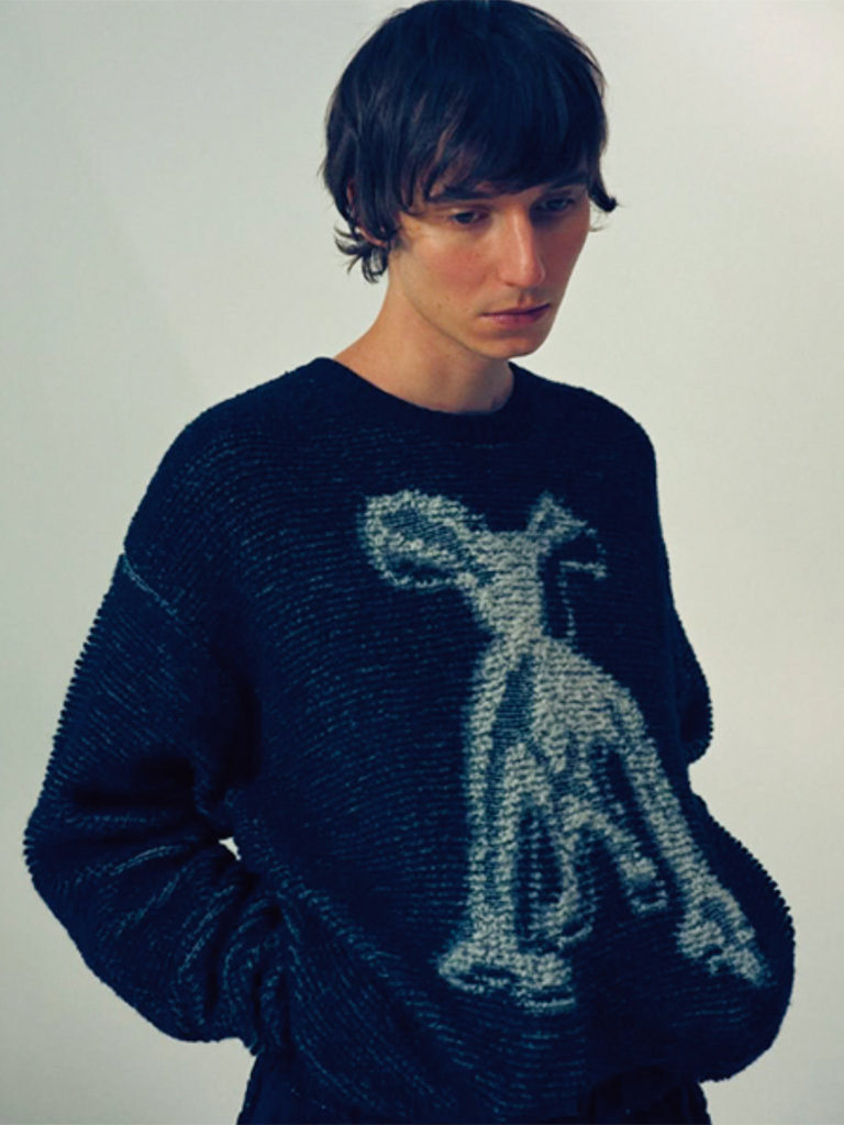 架空のRPGゲームに登場するキャラをイメージしたキャラのジャカードニットは、シックなALL黒のハズし役として使いたいです。」(Glyph/Hedie.+ コンセプター、デザイナー・西垣美奈さん @__minanishigaki)