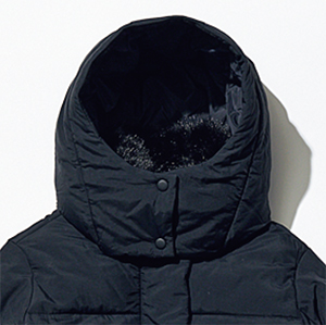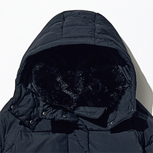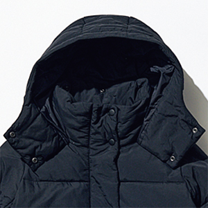 高水準な750フィルパワーの羽毛を使用。3層構造の生地がダウンの吹き出しを軽減。パーツによってダウン量を調整することで、あたたかさを保ったまま着ぶくれして見えないキレイなシルエットを実現。