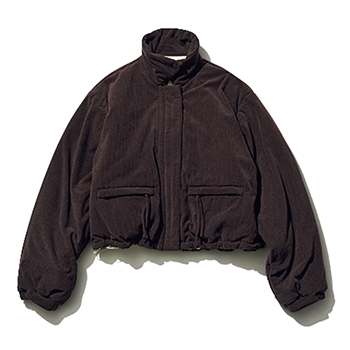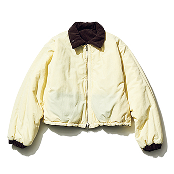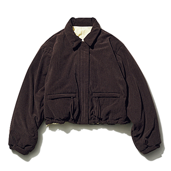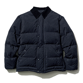「ダウンの気どらない雰囲気はそのままに、シャリッとしたナイロンとはまた違う、落ち着いた雰囲気のコーデュロイ。普遍的な無地の黒が新鮮に。」(スタイリスト・船戸さん)
